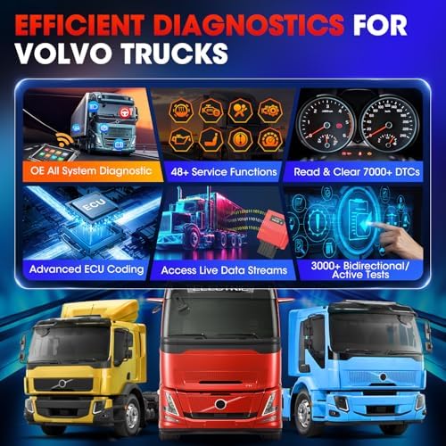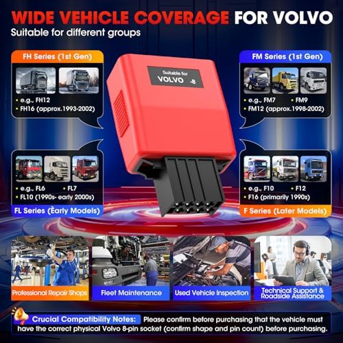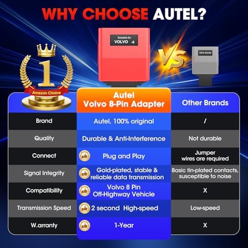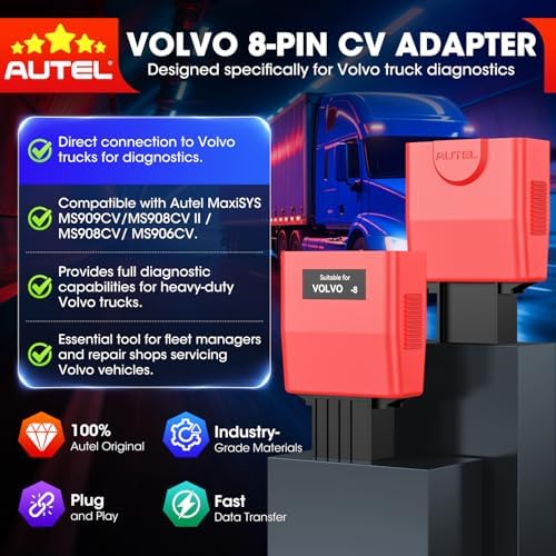 ✅【Work with Autel CV Scanners】This V.olvo 8-pin adapter works seamlessly with Autel CV heavy duty truck diagnostic scanner( Autel MaxiSYS MS909CV, MS908CV II, MS908CV, and MS906CV.) It enables your Autel CV scanner to: Read and clear DTCs, view Live data, Perform 3000+ bidirectional test, injector coding and more functions.