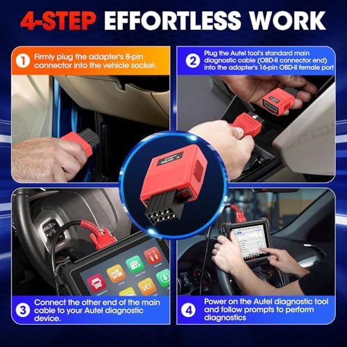 ✅【Only 4 Steps, Easy to Use】With 4 simple steps, you can easily use this adapter to work.👉STEP 1: Insert the 8-pin male connector into the vehicle’s diagnostic port.; 👉STEP 2: Connect the 16-pin plug to the main cable; 👉STEP 3: attach the main cable to both your MaxiFlash Elite/VCI and Autel CV diagnostic tool;👉STEP 4: Power on your Autel heavy-duty truck diagnostic tool and perform diagnostics.