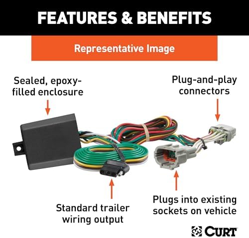 EASY TO INSTALL — No cutting! No splicing! This trailer wiring harness kit plugs into existing factory wiring on your vehicle and equips it with a standard, rear 4-pin trailer wiring connector for plugging in and towing a trailer