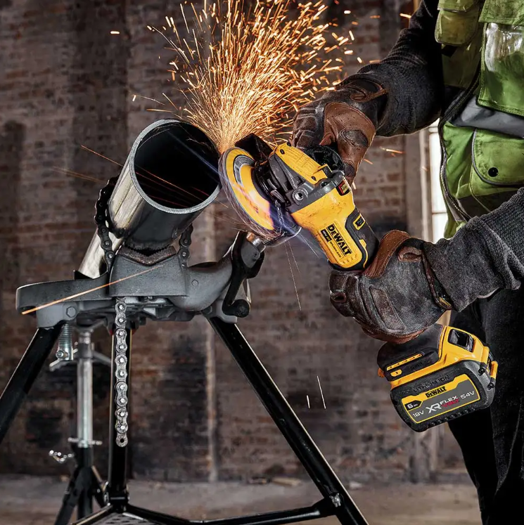 The Dewalt Angle Grinder Delivers Up To 54% More Power When Paired With A FlexVOLT 6.0Ah Battery!