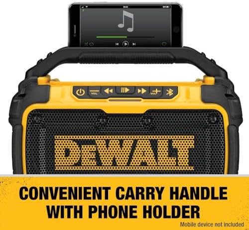 DEWALT 20V MAX Bluetooth Speaker, 100 ft Range, Durable for Jobsites, Phone