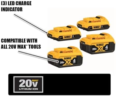 Includes: (2) 20V MAX* Compact 2Ah Li-ion batteries (2) 20V MAX* XR 4Ah Li-ion batteries