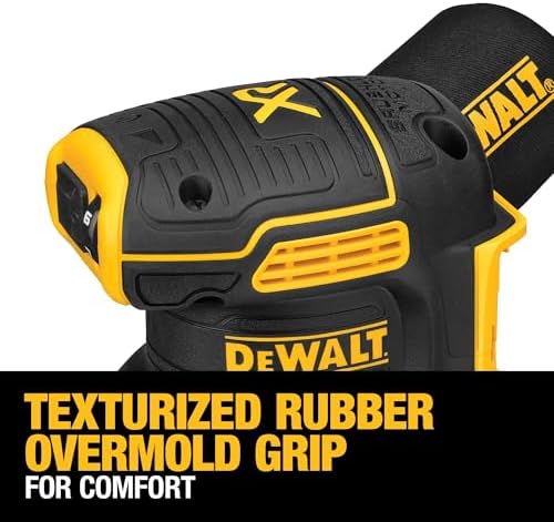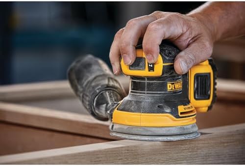 Our 20V MAX* XR 5 in brushless cordless random orbital sander provides the power and runtime needed to get the job done. A variable-speed dial provides ultimate speed control from 8,000 to 12,000 OPM for a variety of projects. One-handed locking dust bag attaches securely to the sander to aid in dust collection or the user can attach the sander directly to the dwv010 or dwv012 dust collectors. Its rubber overmold grip provides comfortable sanding. Replacing the 8-hole, hook-and-loop sanding paper is quick and easy. Battery and charger sold separately.