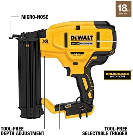 The DEWALT DCN680 18 Gauge Brad Nailer drives 18 Gauge brad nails from 5/8 in to 2-1/8 in which makes it ideal for fastening decorative molding, casing, kitchen crown, and shoe molding. With its brushless motor powered by a DEWALT 20V MAX* Lithium-Ion battery the DCN680 is ready to work without the hassle of using gas, compressor, and hose. Tackle jobs both large and small with the features of a pneumatic tool and the freedom of cordless. * Maximum initial battery voltage (measured without a workload) is 20 volts. Nominal voltage is 18.