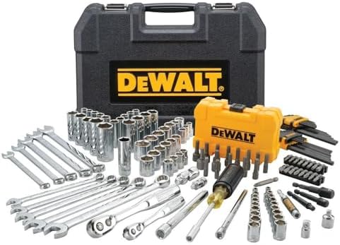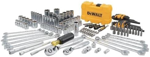 This 142-piece DEWALT Mechanic Tool Set is a versatile choice with two pear head ratchets, a variety of sockets, extensions, universal joints and adapters. The tool sets for mechanics come in a durable case featuring metal latches for added security of the tool sets for mechanics. The 72 tooth count ratchets come equipped with a quick release button to easily attach or remove a socket. The sockets included DirectTorque technology to help prevent rounding of fasteners and provide better grip.
