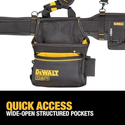 Get quick access to tools, accessories, hardware, and more with the DEWALT Professional Tool Rig with Suspenders. Featuring 25 pockets, a durable construction, and adjustable sizing, this storage solution provides ample room to keep your necessities close at hand.
