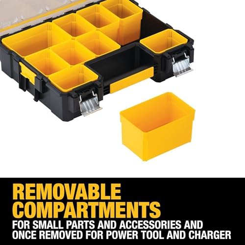 The Deep Pro Organizer comes with removable cups to organize various part and tool sizes, and includes a anti-rust metal latch of security.