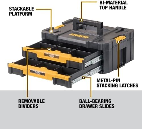 DEWALT TSTAK Tool Storage Organizer with Double Drawers, Holds Up to 16.5 lbs