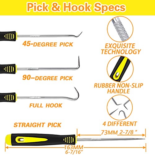 O RING PICK SET:Viton o-rings assortment comes with 4-Piece pick and hook set:full hook,45-degree pick,90-degree pick,straight pick