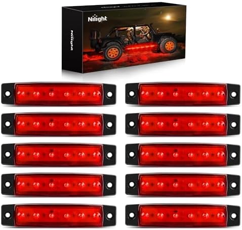 Nilight 10 PCS Red 3.8 Inch 6 LED Side Marker Front Rear Indicator Clearance