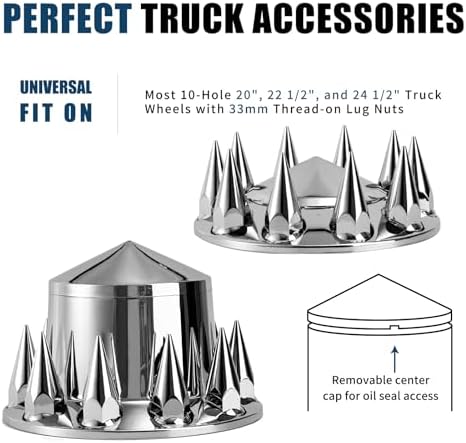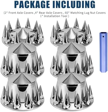 Spiked Wheel Covers for Semi Trucks – 2 Front and 4 Rear Axle Hub Covers with