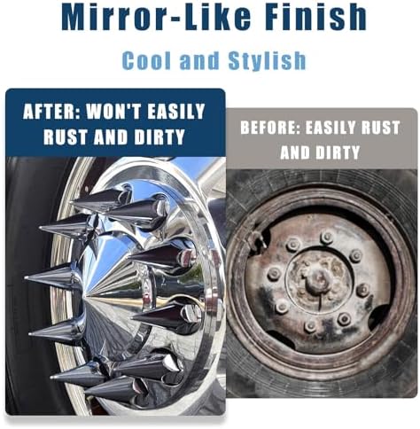 The tapered design gives your truck an aggressive visual feel and makes the whole vehicle even more eyecatching. The spike semi truck hub covers’ polished, mirror-like design adds a touch of sophistication. Chrome wheel hub cap not only lend a personalized touch to your truck wheels but also elevate your truck’s overall performance.