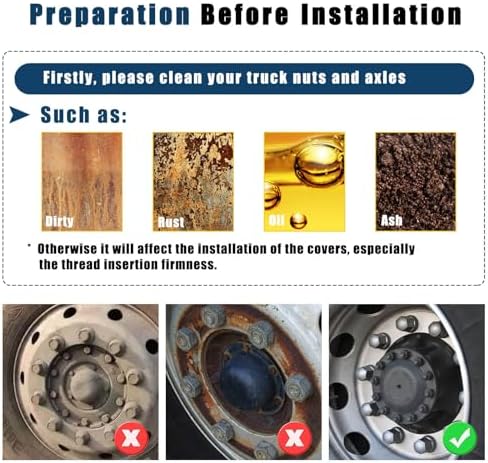 Conceal unsightly axles effortlessly with these gleaming and budget-friendly ABS semi truck wheel covers. Designed to fit most 10-lug 20″, 22.5″, and 24.5″ truck wheels with 33mm screw-on lug nuts, these semi truck lug nut covers are suitable for mid-1990 and newer uni-mount style wheels. Prior to purchasing, kindly measure and verify the size of your truck wheel axles.