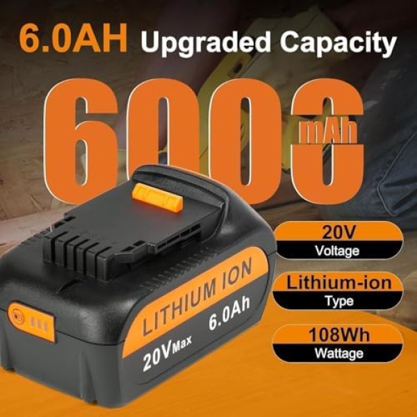 Replacement for DeWalt 20V Max Battery,20V 6Ah Lithium Ion Batteries Compatible